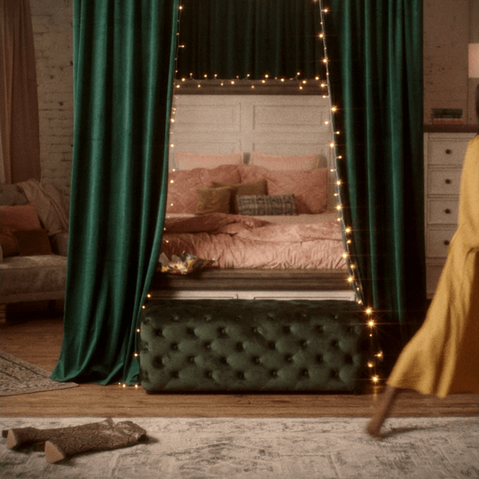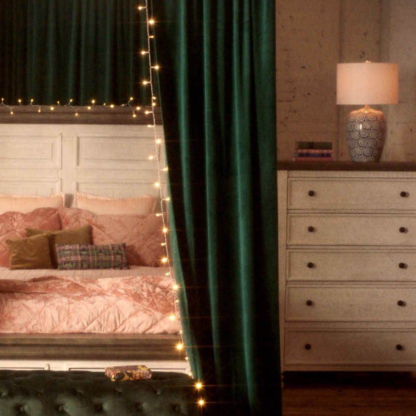 Holiday lights are the best accessory to lighten up your interiors—and really it just makes everyone happy. Add a twinkle to your bed frame with tiny fairy lights and hang bistro lights from your ceiling—this is one time when it’s ok for everything to shine.